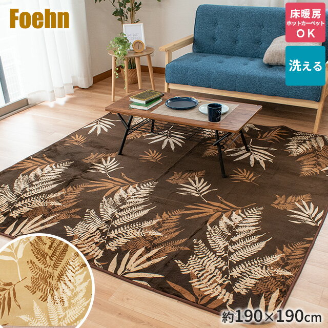 ホットカーペットカバー ラグ 「フェーン」 2畳用 190×190cm 正方形 ラグ マット センターラグ リゾート アジアンリゾート リーフ 秋 冬 あったか 厚手 こたつ敷き布団としても ホットカーペット対応 床暖房 2帖用 送料無料 あたたか リビング 洗える 暖か【あす楽対応】