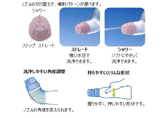 ・ジャバラ付きノズルで角度が自由自在! ・シャワー、ストレート、ストップの切替付。