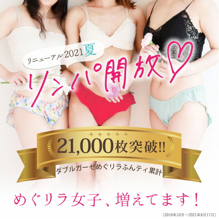 ※メール便送料込の価格になっております 商品ページへ⇒ 2021年夏リニューアル!改良後もお値段据え置き! 楽天市場ランキング週間1位獲得※、たくさんのお客様にご愛用いただいております『ダブルガーゼめぐリラふんティ』を、2021年6月5日にリニューアルいたしました! 日頃のご愛顧に感謝し、お値段は据え置き!品質を向上させてお届けいたします。