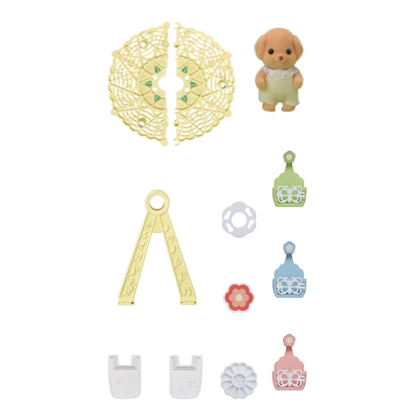 このベビー観覧車には、最大3人の赤ちゃんが座れるかわいい観覧車とトイプードルのベビーフィギュアが付属しています。